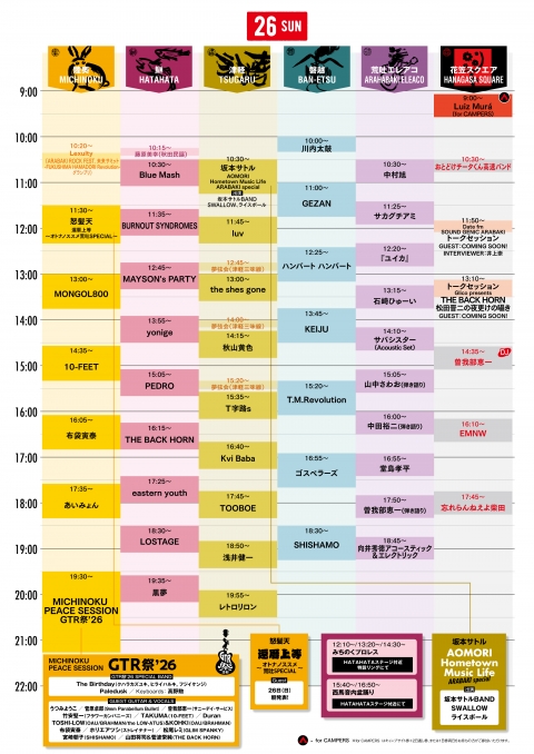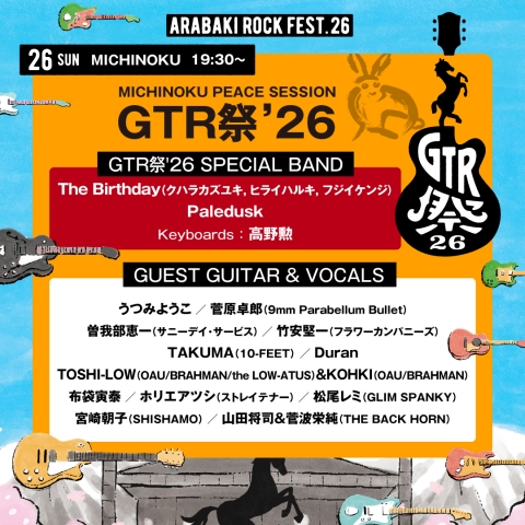 2026.04.26 EVENT 【ホリエソロ】ARABAKI ROCK FEST.26「MICHINOKU PEACE SESSION GTR祭'26」 国営みちのく杜の湖畔公園 北地区 エコキャンプみちのく 19:30-MICHINOKUステージの「MICHINOKU PEACE SESSION GTR祭'26」に、ホリエアツシがゲストボーカル出演決定! 詳細はイベント公式HPにてご確認ください。 https://arabaki.com/