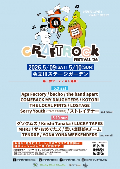 2026.05.09 EVENT CRAFTROCK FESTIVAL’26 立川ステージガーデン 詳細はイベント公式HPにてご確認ください。 https://craftrock.jp/fes2026/